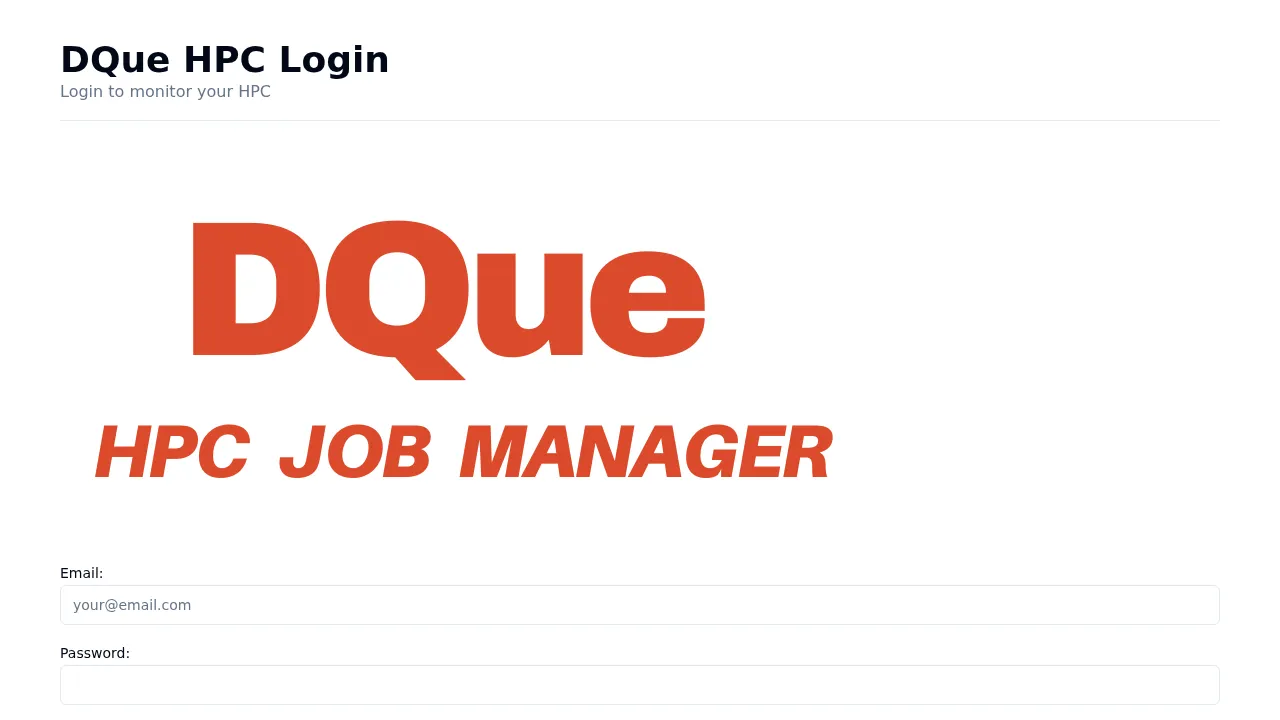 Navigate to your DQue instance URL to access the login page.
