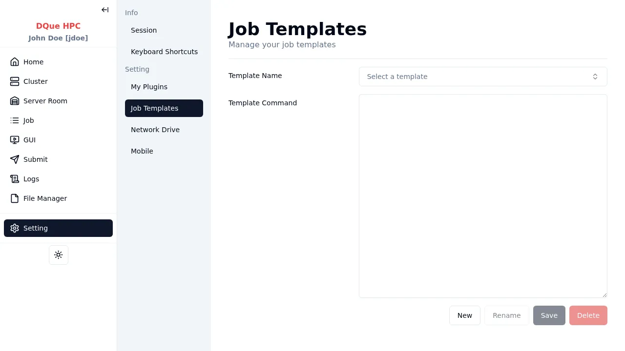 General, OpenFOAM, Conda 제출 페이지에서 템플릿을 사용할 수 있습니다. 사용자별로 저장되며 세션 간에 유지됩니다.